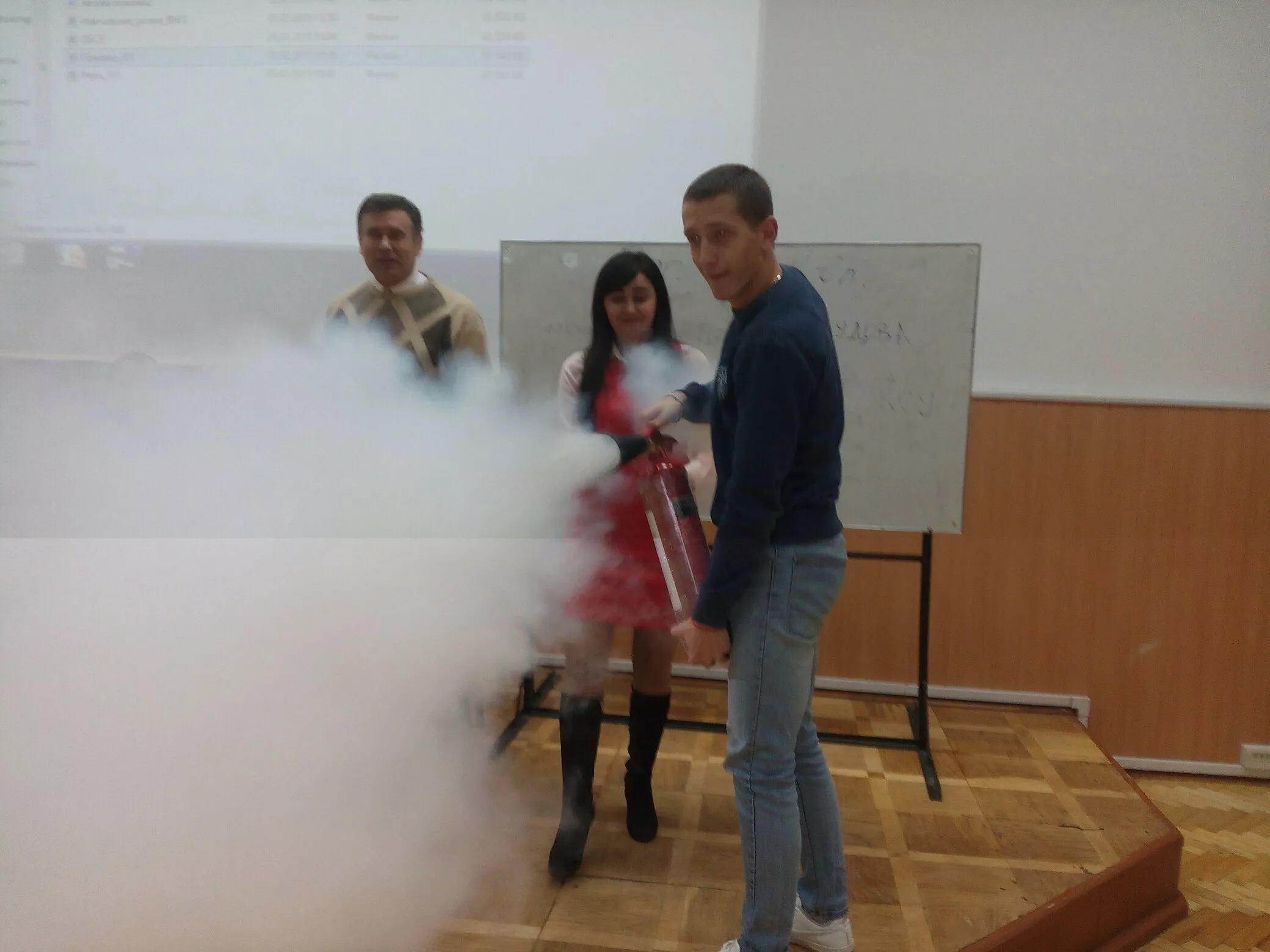 Студентів ознайомили з роботою Добровільного пожежного товариства у Волинській області (голова товариства Загародній Г. І., заступник директора Кревський М. О.), ДСНС України у Волинській області (начальник відділу агітаційно-пропагандиської роботи ЦЗД УДСНС України у Волинській області, майор служби цивільного захисту Варварук І. Г., провідний фахівець капітан Мишко В. Ю., провідний інспектор Побережник К. С.). Навчали молодь правил поведінки під час пожежі та користування різними видами вогнегасників, як діяти під час сповіщення про надзвичайну ситуацію, що робити, якщо знайшли вибухо-небезпечний предмет, а також навчались надати першу медичну допомогу.
