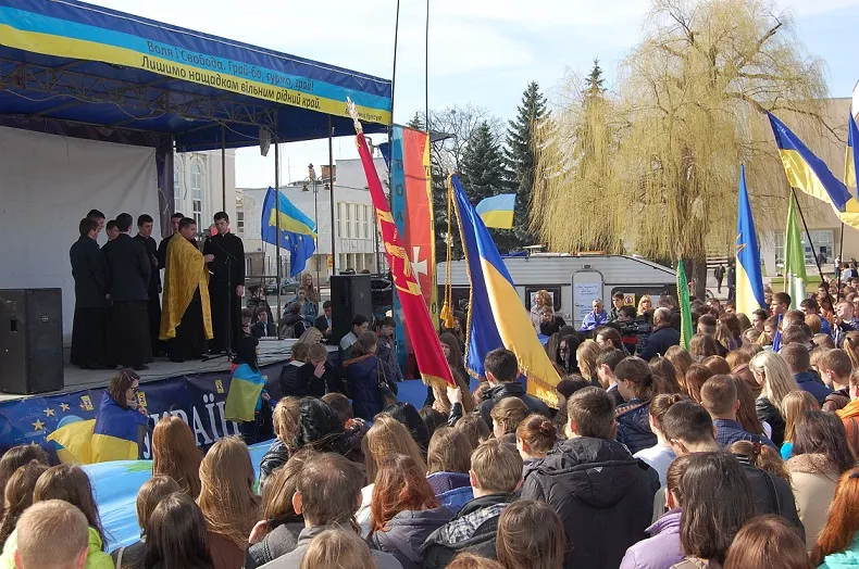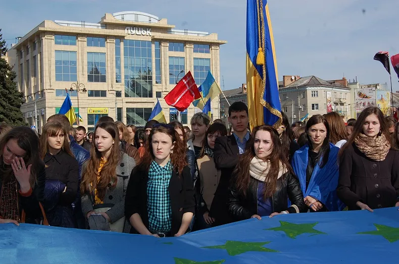 21 березня біля пам’ятника Лесі Українки в Луцьку відбулося студентське віче на підтримку європейського вектора розвитку України за участі представників навчальних закладів міста. Розпочався захід з урочистого звучання Гімну України, а також молитви духовних отців.