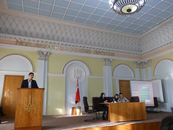 Робота конференції розпочалася зі звіту голови студради. Андрій Данилюк розповів про ініціативи, які були реалізовані за минулий рік. Це численні наукові, просвітницькі та розважальні заходи. «Якщо упродовж минулого року, я лише аналізував проблеми у середовищі студентства та вивчав можливості самоврядування, то сьогодні можу сказати, що маю чітке бачення в якому напрямі потрібно розвивати самоврядування у нашому виші. Першим кроком, який варто зробити – це зареєструвати студентську раду як громадську організацію. Вважаю, це одним з найважливіших кроків на шляху до автономії особливо у сфері фінансів. Також, це розширить межі співробітництва. І ще раз дякую за довіру!», – підсумував голова студради.