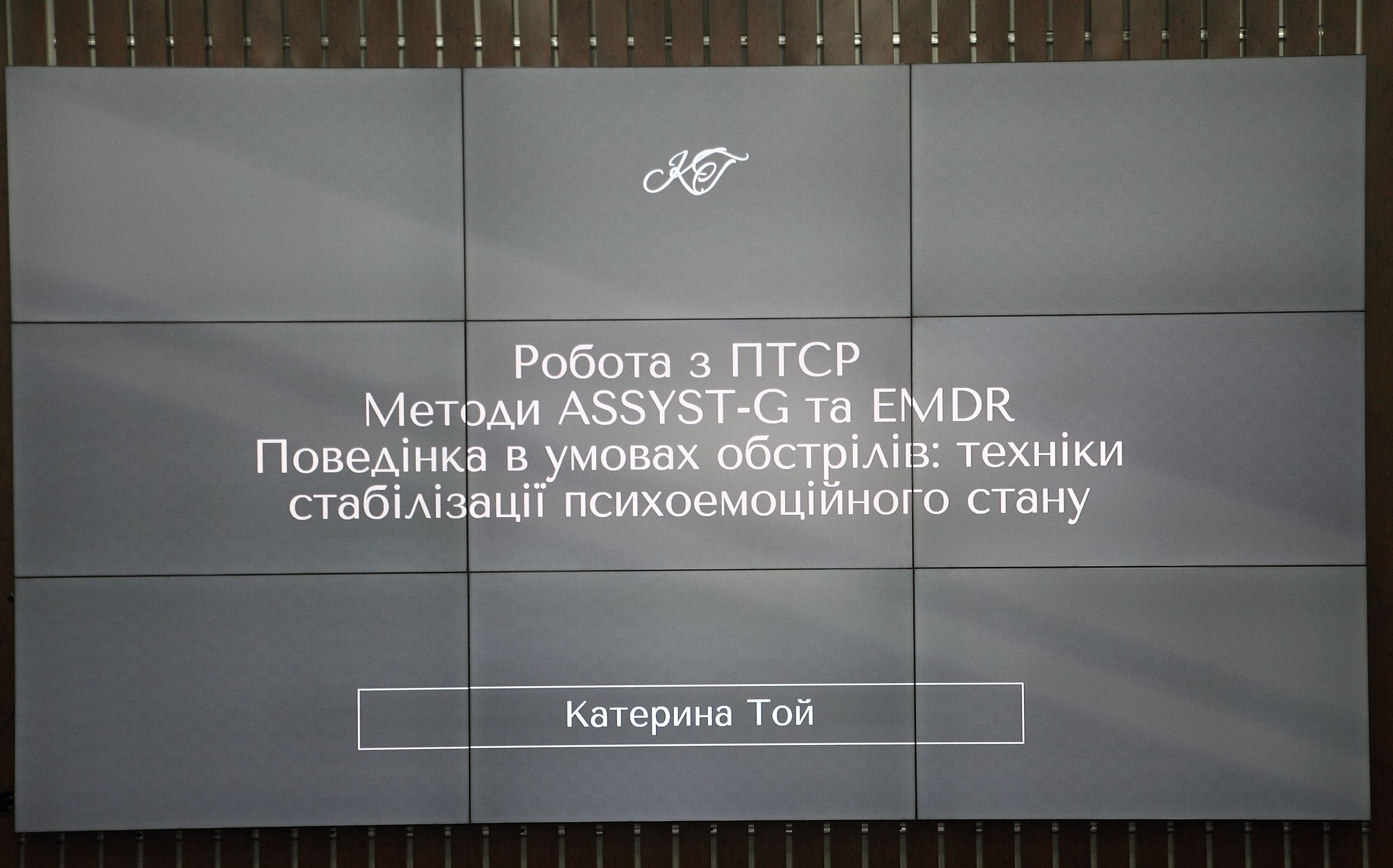Катерина Той також розповіла про роботу з посттравматичним стресовим розладом (ПТСР) та методи EMDR (психотерапевтичний підхід для роботи з травмами) і ASSYST-G – його групову модифікацію, що дає змогу допомагати більшій кількості людей одночасно.