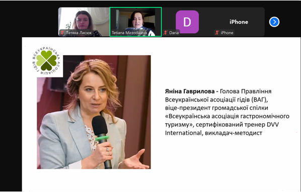 Ключові питання, які були розглянуті під час вебінару: аналіз сучасних запитів туристів (від локальних пригод до концепції сталого туризму); інклюзивність у туризмі (чому доступність для всіх стає важливим чинником успіху); інтеграція новітніх підходів у туристичні практики з урахуванням актуальних потреб туристів.