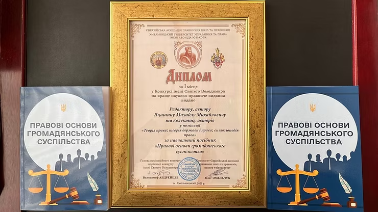 У номінації «Теорія права; теорія держави і права; енциклопедія права», секція «Підручники та посібники» перше місце присуджено редактору, автору Яцишину Михайлу Михайловичу та колективу авторів за навчальний посібник «Правові основи громадянського суспільства».