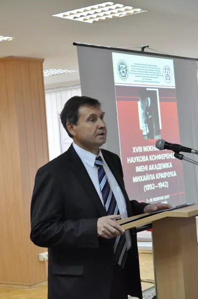 Перший заступник міністра освіти і науки України Володимир Ковтунець нагадав, про вклад українських учених – Михайла Остоградського, Георгія Вороного та Михайла Кравчука у розвиток світової науки. З особливою приємністю Володимир Віталійович повідомив, що традиції продовжуються, і нині ми маємо чим пишатися – українка Марина В’язовська відзначена «Премією Салема – 2016» та удостоєна премії SASTRA RamanujanPrize 2017 року. Висловлюючись про Михайла Пилиповича, він наголосив:«Спадщина Михайла Кравчука для українців, історії дуже важлива. І не тільки його наукові роботи, але і біографія. Я часто згадую досить цікавий факт із біографії Михайла Кравчука: в часи громадянської війни, рятуючись, він перебрався у село, і працюючи у школі, писав підручник! Потрібно згадати інший урок Михайла Пилиповича, пов’язаний з його науковою діяльністю. В ті часи не так багато було вчених, але високо цінувалися результати. І коли зараз нас критикують, що нищимо науку, то мушу сказати, що за ці роки склалася система, де ми оцінюємо не наукові результати, а вимірюємо результати кілограмами, тоннами списаного паперу. Ми в дисертаціях відійшли від того, щоб оцінювати реальні наукові здобутки, а рахуємо кількість фахових статей та в яких журналах вони опубліковані. Ми хвалимося кількістю кандидатів наук, докторів, але одиниці можуть себе реалізувати як науковці і в більшості випадків за кордоном. У нас вибудована система, яка не чутлива до інновацій. І з тими мінімальними коштами, які виділяються на науку й освіту, ми хочемо нічого не змінювати. Насправді потрібно все змінювати і серйозно змінювати. Є науковий результат – є диплом, нема результату – нема диплому. Це дасть дорогу хорошим науковцям, які можуть продовжувати справу таких вчених як Михайло Кравчук. А будуть результати – буде в нас усе: і ресурси, і фінанси».