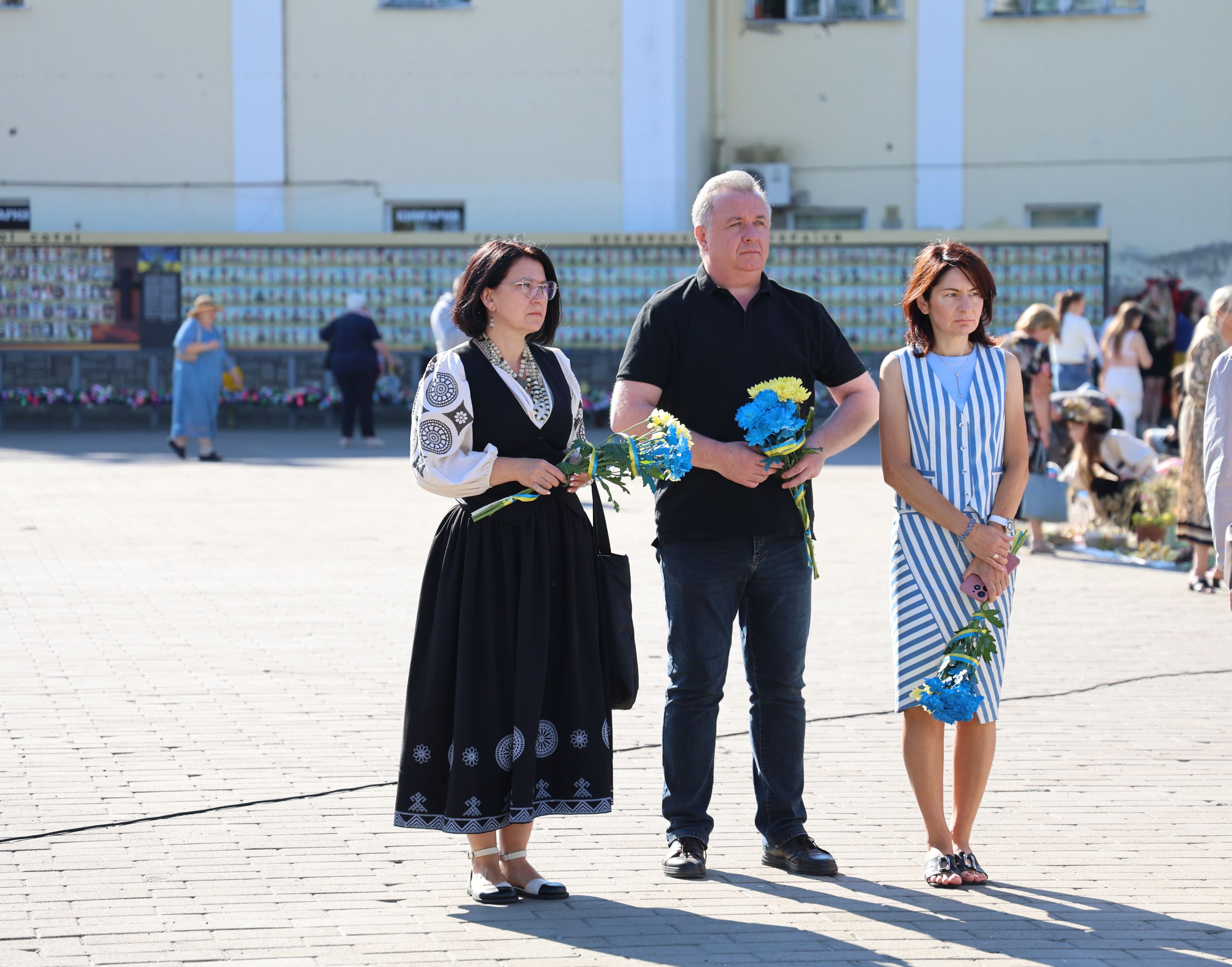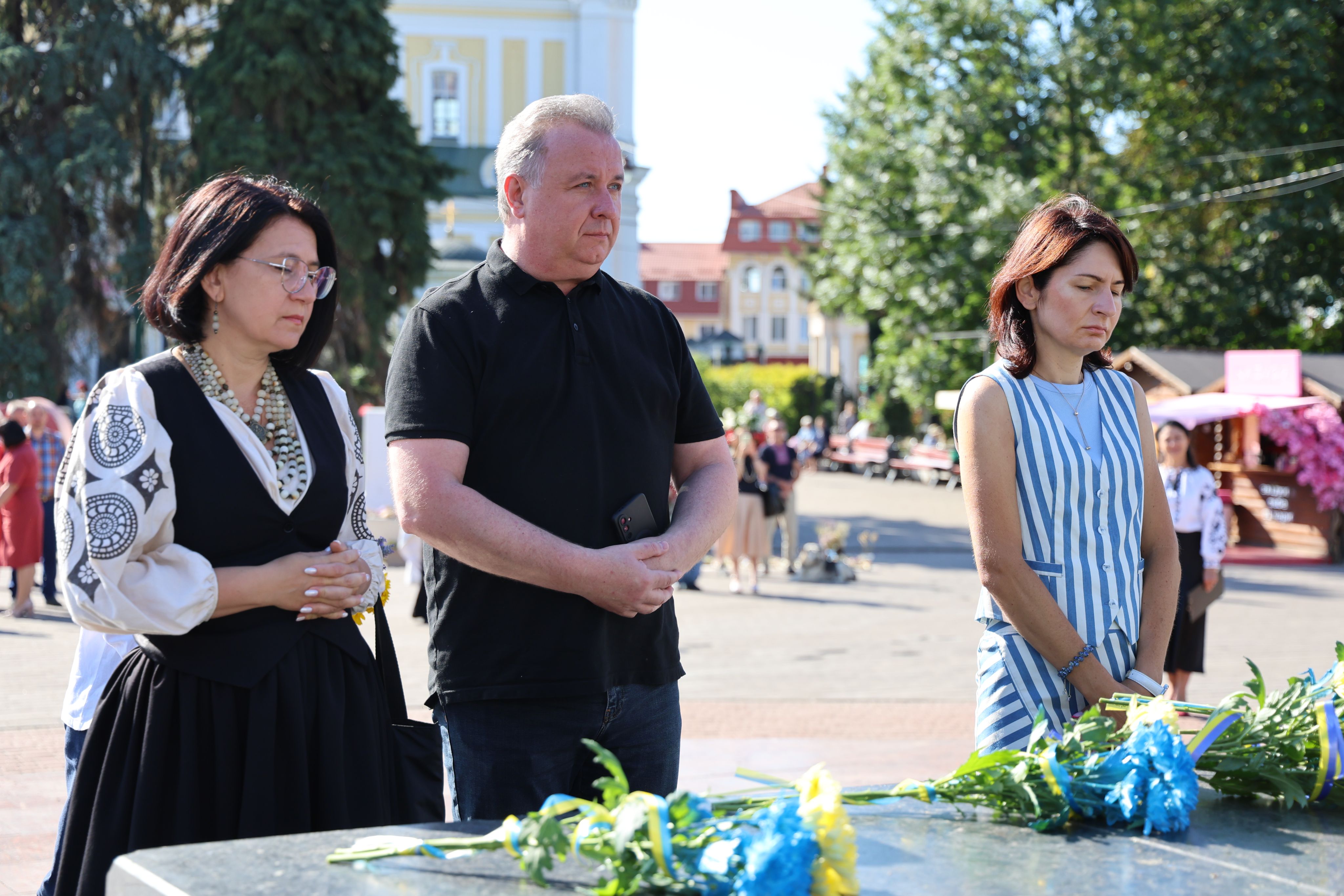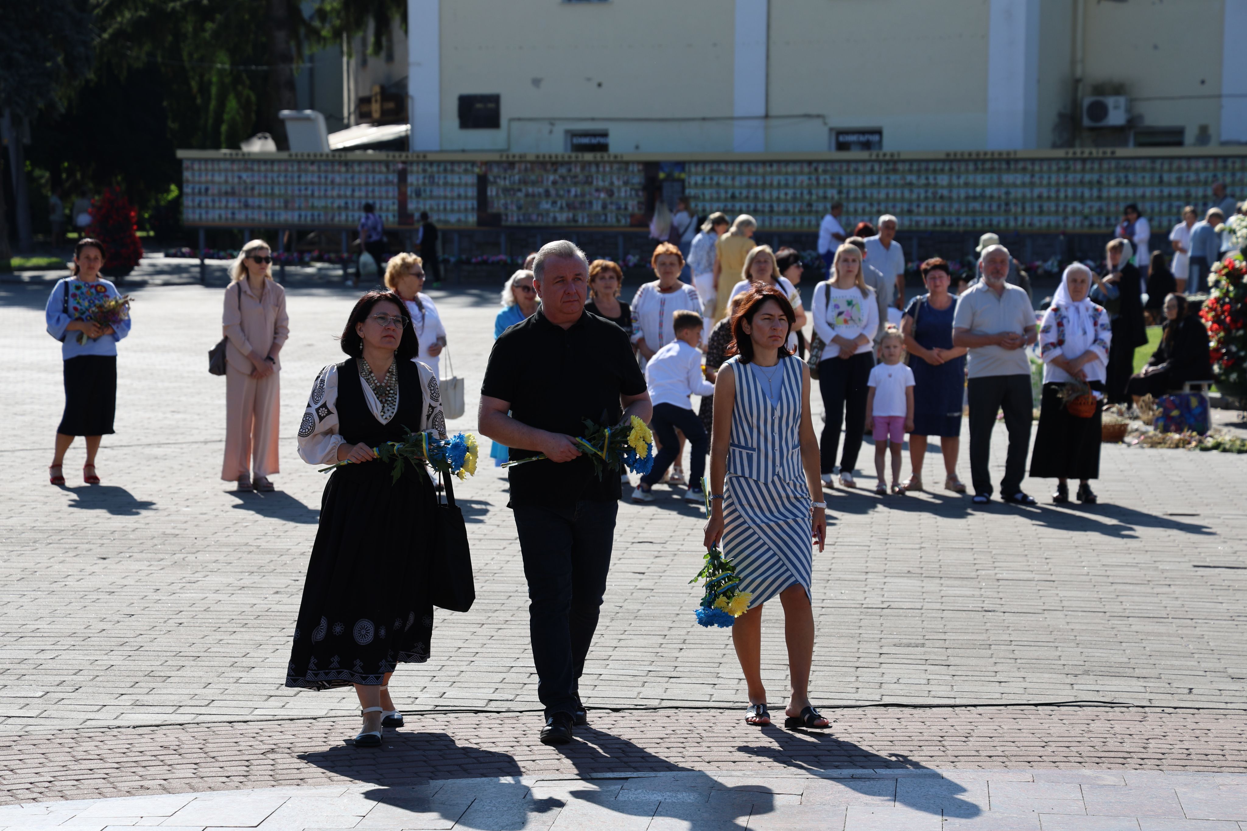 На Театральному майдані священники відслужили заупокійний молебень за душу спочилої, хвилиною мовчання вшанували пам’ять усіх тих, хто власними життями зараз боронить незалежність України та національний спадок Лесі Українки зокрема, а присутні – поклали квіти до підніжжя пам’ятника великої мисткині.