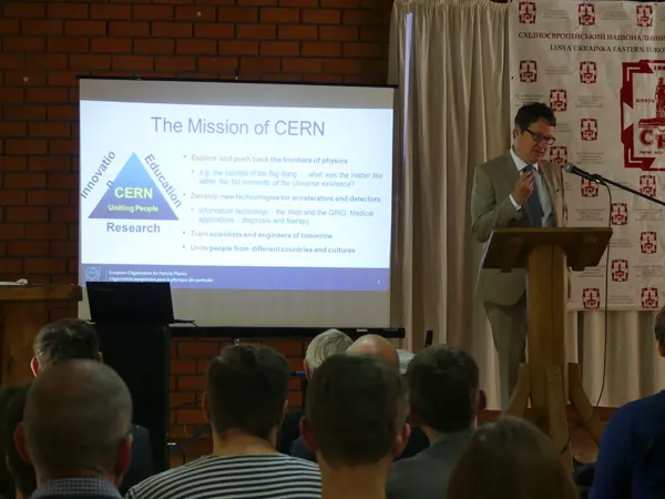 На пленарному засіданні наукового зібрання виступили ректор СНУ імені Лесі Українки Ігор Коцан, заступник Міністра освіти і науки України Максим Стріха, директор Державного фонду фундаментальних досліджень України Борис Гриньов, аташе з питань наукового та університетського співробітництва Посольства Франції в Україні Сільвен Ріголле, старший радник з роботи з асоційованими членами ЦЕРН Крістофер Шафер; науковець Центру наукових досліджень (аналог АН), ко-директор асоційованої лабораторії LIA IDEATE Сергій Барсук (LAL Orsay, Франція). Східноєвропейський національний університет імені Лесі Українки представляли кандидат фізико-математичних наук, доцент кафедри теоретичної та математичної фізики Петро Трохимчук та кандидат хімічних наук, науковий співробітник хімічного факультету Юрій Когут. Модерував засідання представник Комісаріату атомної енергії Франції (CEA Saclay), керівник колаборації RD51 у ЦЕРН Максим Тітов.