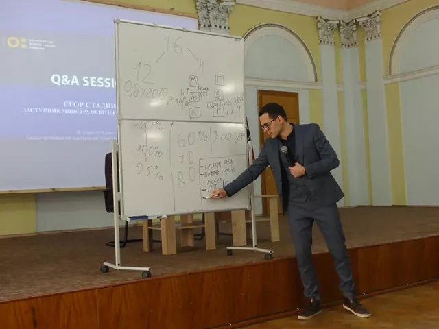 Докладно Єгор Стадний розповів про реформування системи фінансування. Так, кошти розподілятимуться за шістьма показниками: масштаб університету; регіональний коефіцієнт (Київ – 1, Львів, Харків – 1,03, решта – 1,07); контингент (кількість студентів, але, наприклад, спудеї природничих спеціальностей у перевазі); показник якості (вимірюватиметься з січня 2021 року) – працевлаштування випускників, відсоток успішності зайнятості, чи обіймана посада вимагає вищої освіти; надходження коштів із позабюджетних джерел; входження до міжнародних рейтингів.