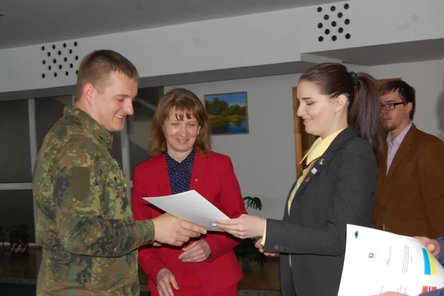Привітали військовослужбовців зі здобуттям нової професії декан інституту економіки та менеджменту Любов Ліпич і директор з розвитку проектів Міжнародного фонду соціальної адаптації Яна Козаченко. Любов Григорівна щиро подякувала Королівству Норвегія за фінансову підтримку проекту з перенавчання задля розширення спектру працевлаштування військових і побажала випускникам гідно використати здобуті нові теоретичні й практичні знання. Пані Козаченко запевнила, що вона як донька колишнього військового льотчика докладатиме максимум зусиль, щоби українські військовослужбовці змогли себе знайти в цивільному житті.