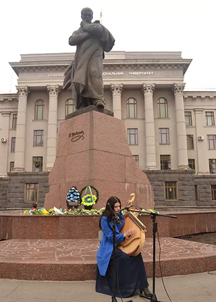 9 березня в Луцьку біля пам’ятника Тарасу Шевченкові представники влади, інтелігенції, освітяни та небайдужі до постаті письменника лучани вшанували 203-річчя від дня народження геніального українського поета та художника Тараса Шевченка мистецьким дійством «Нас єднають думи Кобзаря».