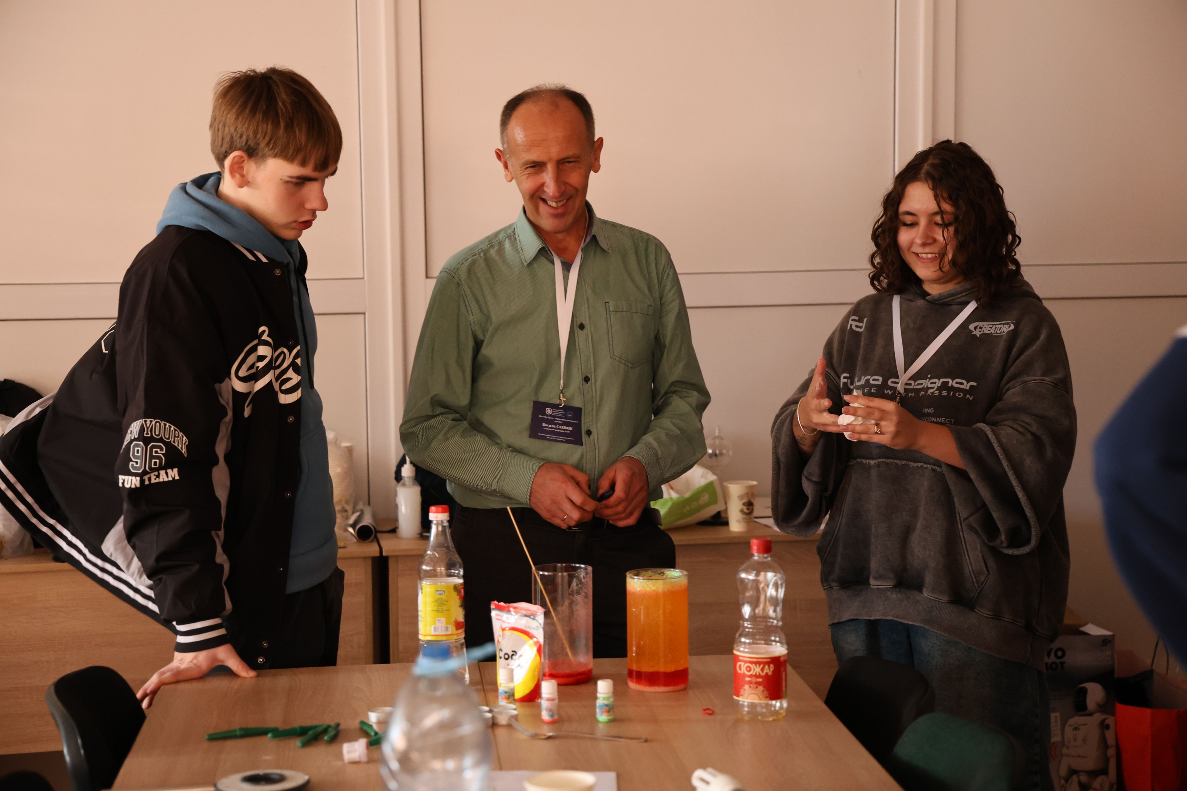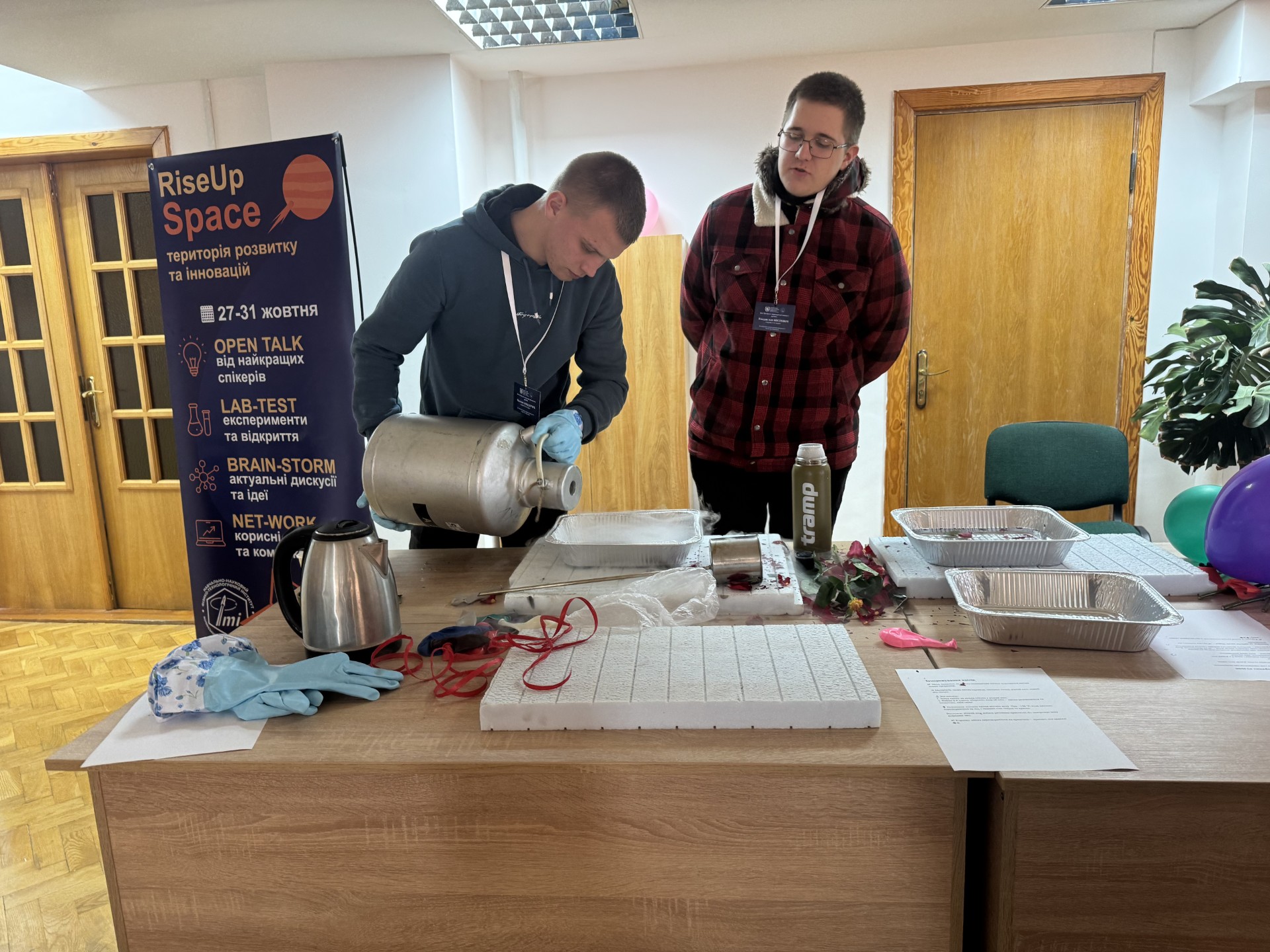 Під час дослідів школярі спостерігали ефектні експерименти з рідким азотом – заморожування квітів, утворення азотного диму, крихкість повітряних кульок – а також побутові фізичні явища, що показують, як наука працює у нашому щоденному житті.