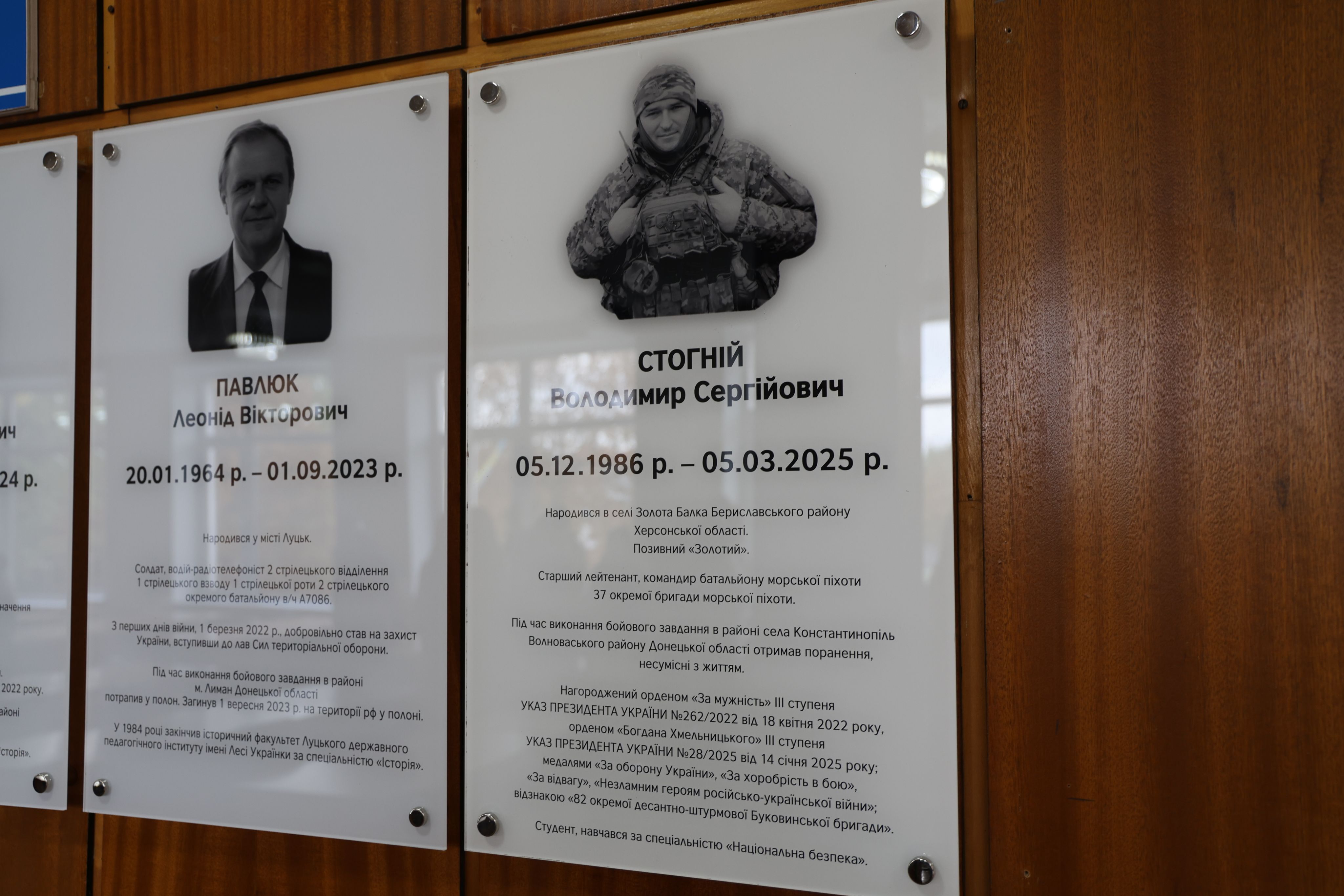 14 жовтня 2025 року на факультеті історії, політології та національної безпеки відкрили меморіальні дошки загиблим захисникам України – студенту спеціальності «Національна безпека» Володимиру Стогнію та випускнику спеціальності «Середня освіта. Історія» Назарію Літвінцову.