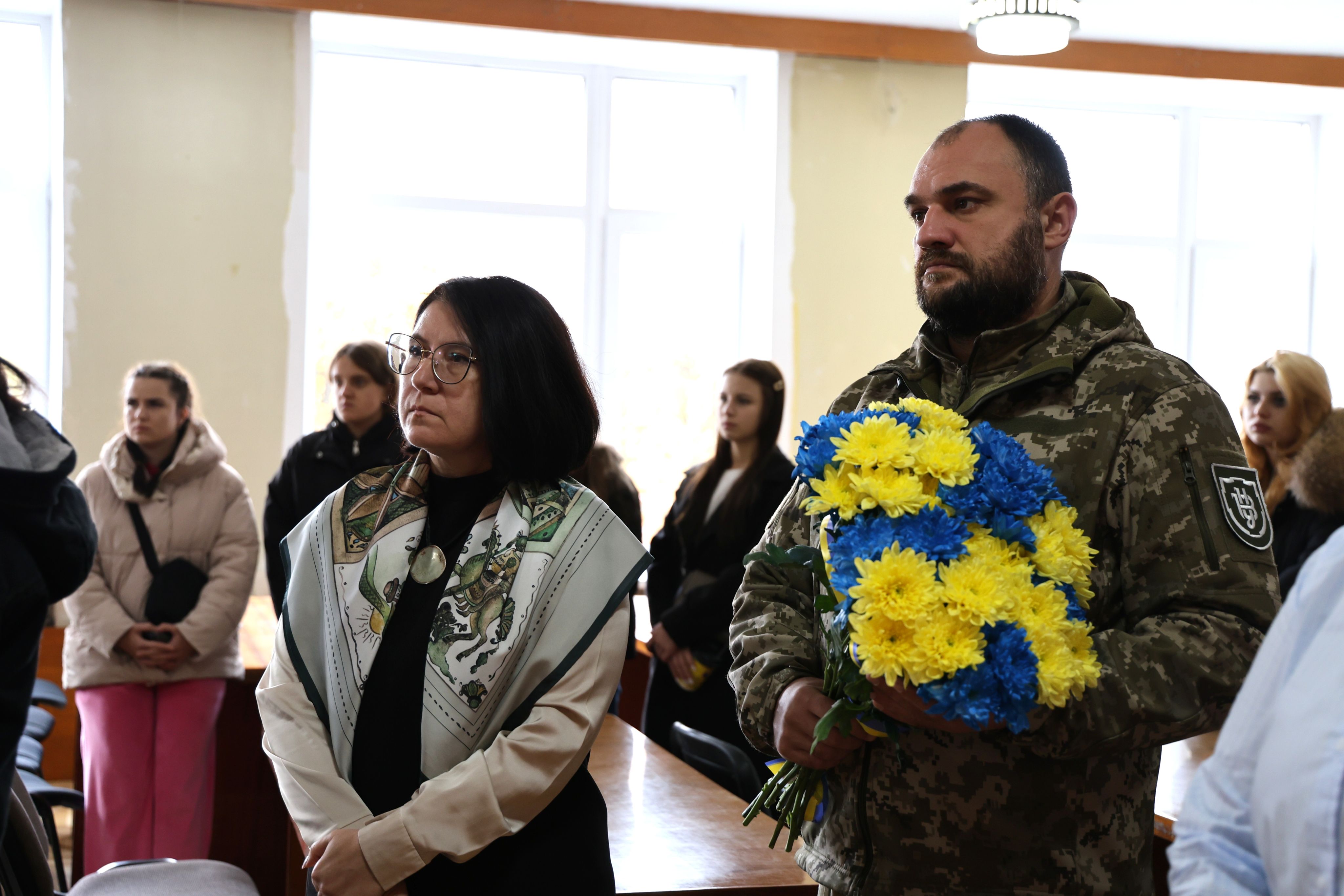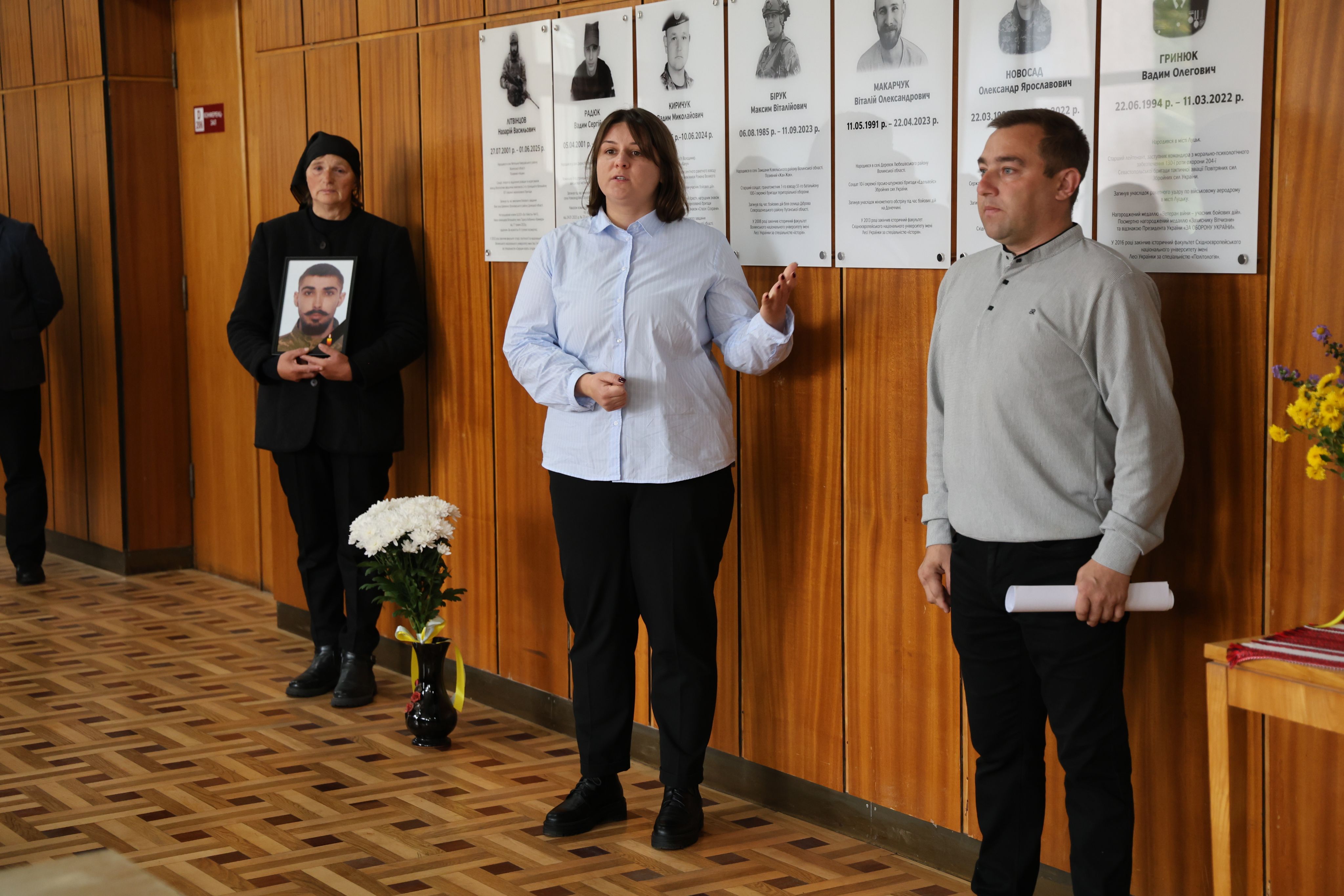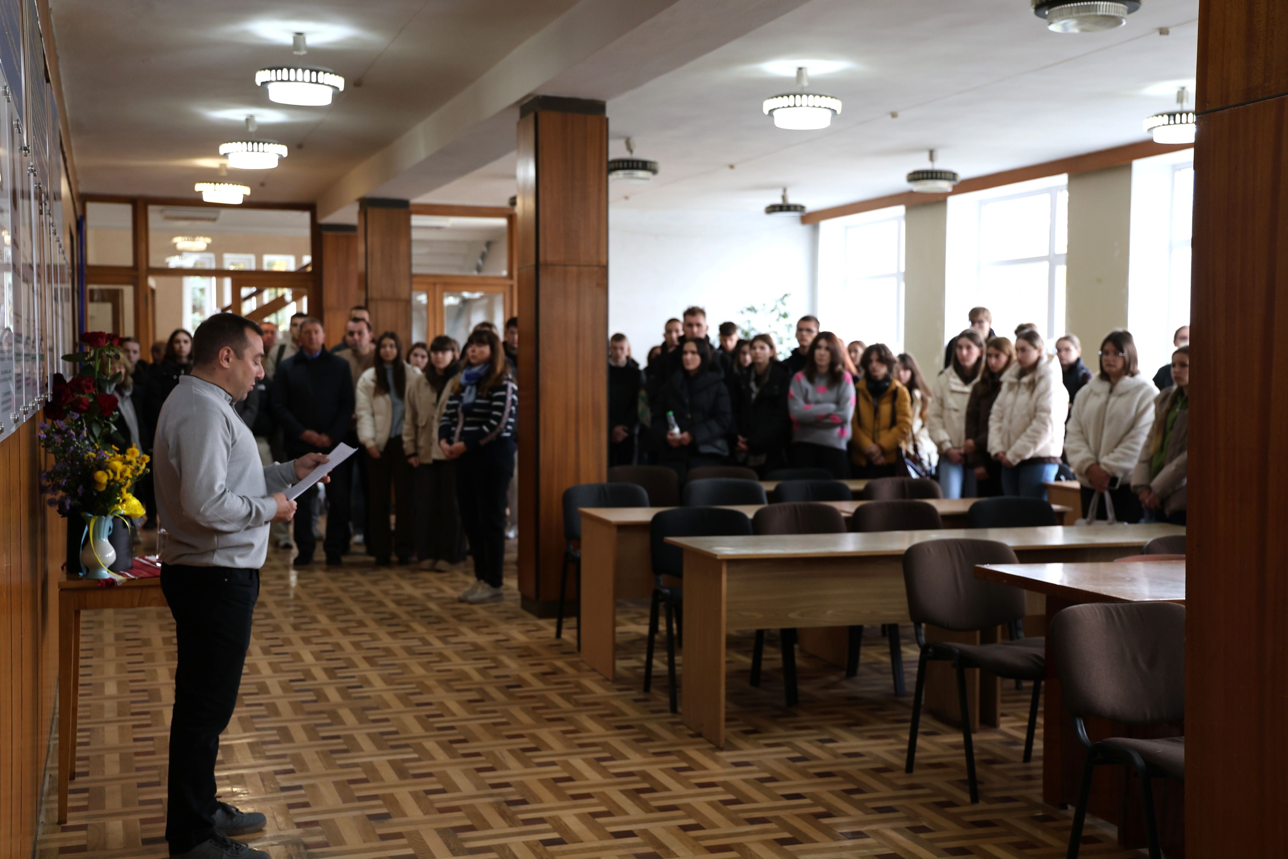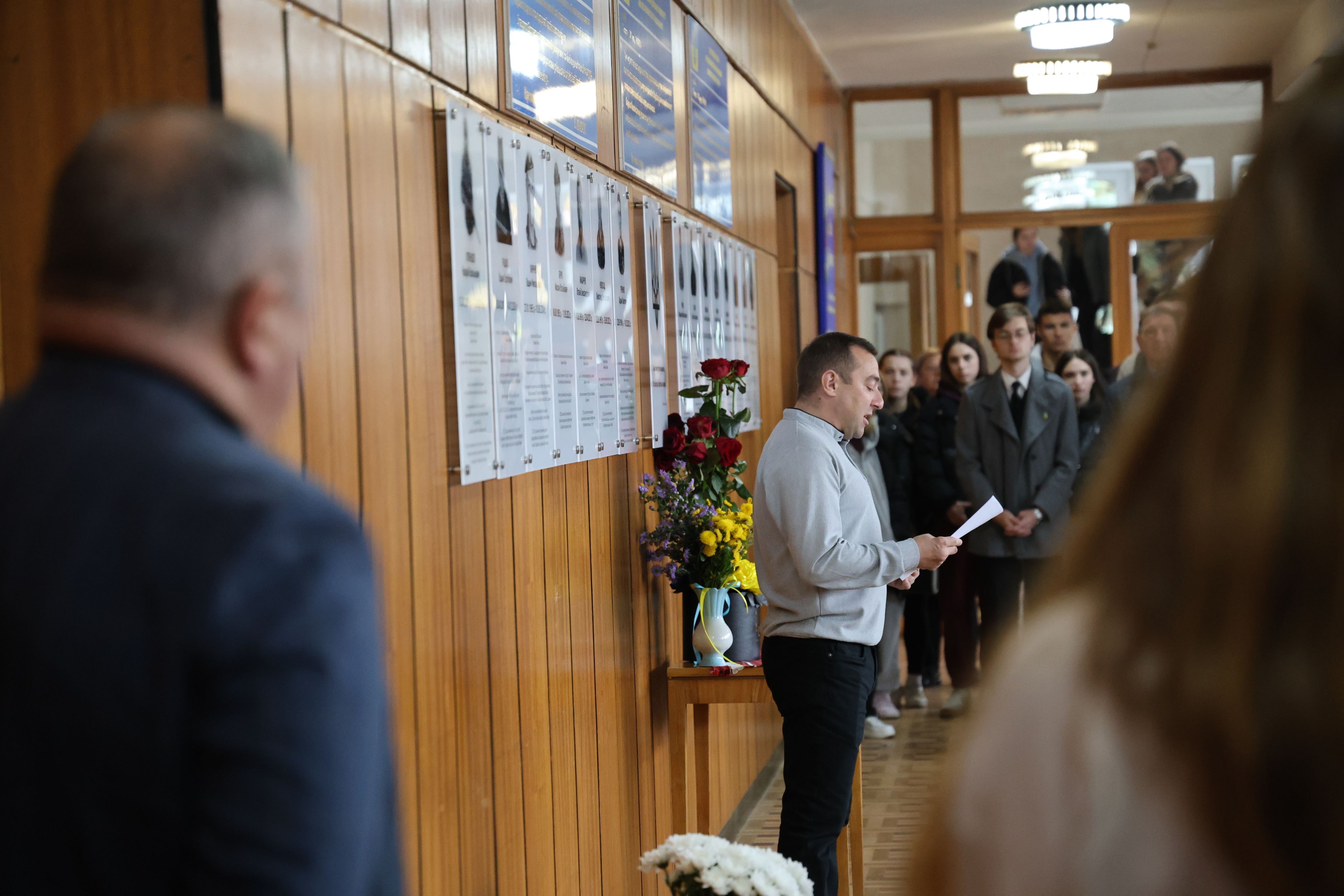Присутні, серед яких – батьки та рідні полеглого Назарія Літвінцова, проректорка Наталія Благовірна, фахівець з питань ветеранської політики Андрій Лев, декан факультету Галина Малеончук, заступник декана з виховної та соціальної роботи і молодіжної політики Іван Рудянин, викладачі та студенти, схилили голови в пам’ять про всіх загиблих захисників України.