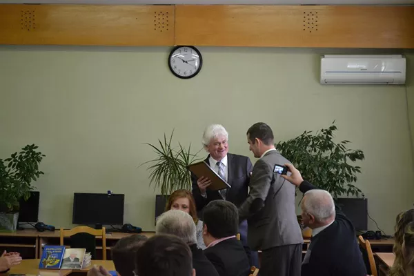 Проректор з наукової роботи та інновацій Андрій Бояр вручив автору Золотий нагрудний знак СНУ імені Лесі Українки за особистий внесок у розвиток університету та з нагоди ювілею.
