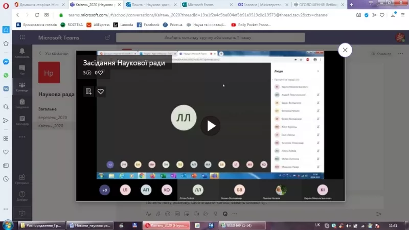 Вперше засідання Наукової ради проводилося в онлайн режимі на платформі університетського порталу Office – 365, в програмі Microsoft Teams. Вибір цієї програми був обумовлений низкою її переваг: