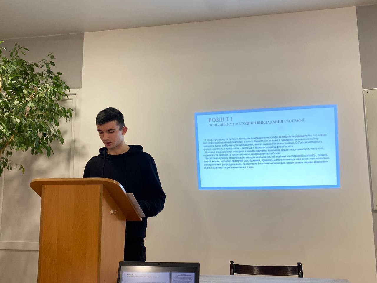 4 грудня 2024 року на кафедрі економічної та соціальної географії відбулися захисти курсових робіт із методики навчання географії здобувачів освіти ІІІ курсу спеціальності 014 Середня освіта (Географія), ОПП «Середня освіта. Географія. Економіка».