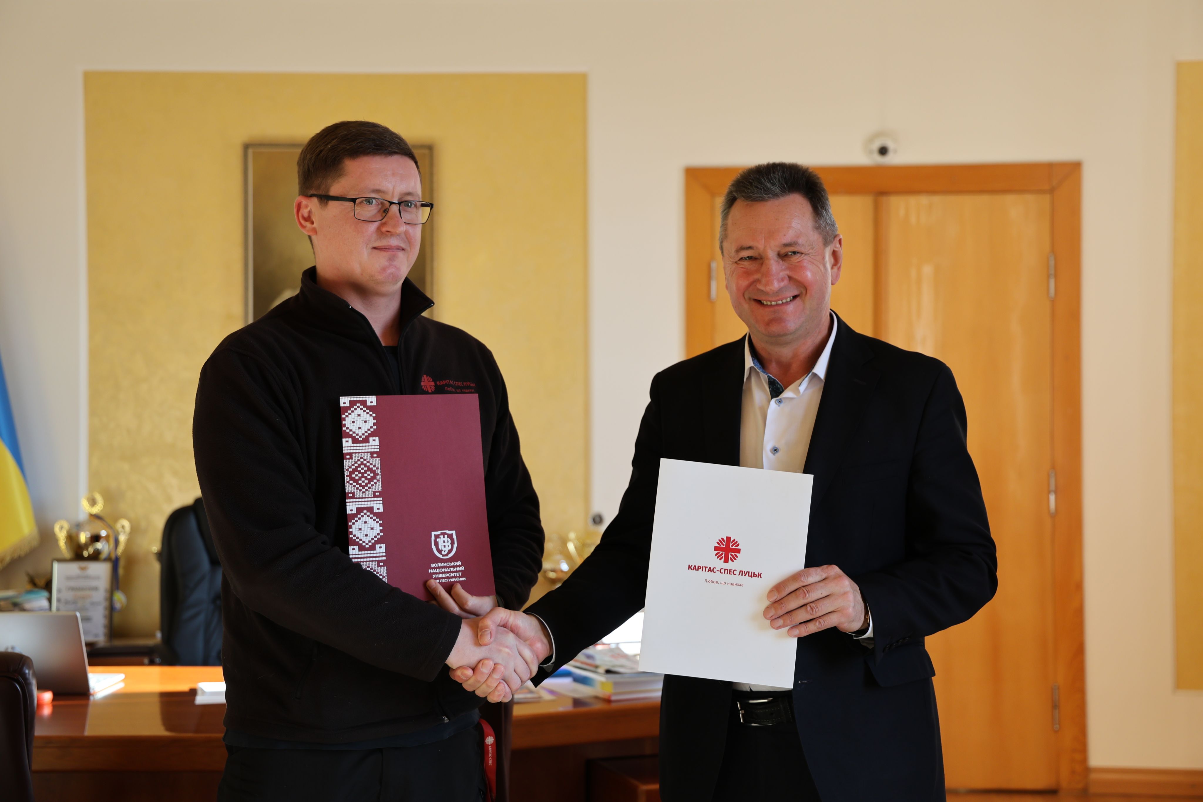 Документ підписали ректор ВНУ імені Лесі Українки Анатолій Цьось та директор «Карітас-Спес Луцьк» отець Павло Хомʼяк. При підписанні також були присутні декан факультету філології та журналістики Віктор Яручик, завідувач кафедри полоністики і перекладу Світлана Сухарєва, доцентки кафедри полоністики і перекладу Юлія Васейко та Наталія Цьолик.