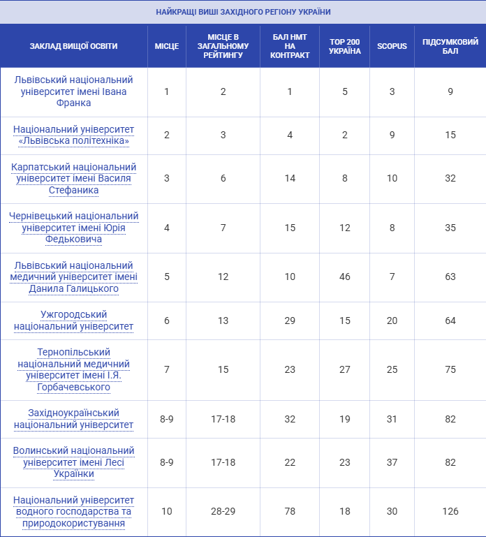 Докладніше ознайомитися з методологією укладання Консолідованого рейтингу закладів вищої освіти України можна за посиланням.