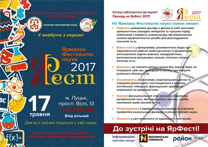 Усіх бажаючих поринути у світ науки запрошуємо на «ЯрФест», який відбудеться 17 травня 2017 року у Східноєвропейському національному університеті імені Лесі Українки.