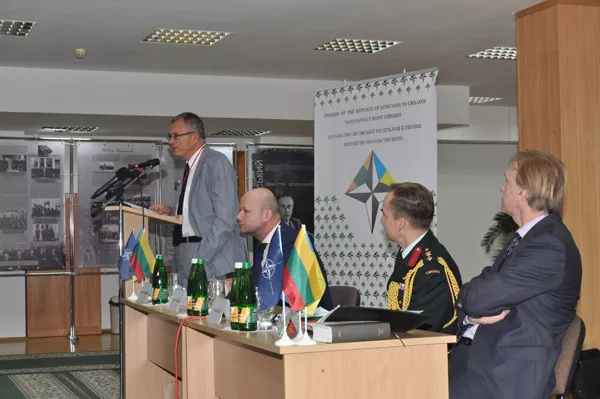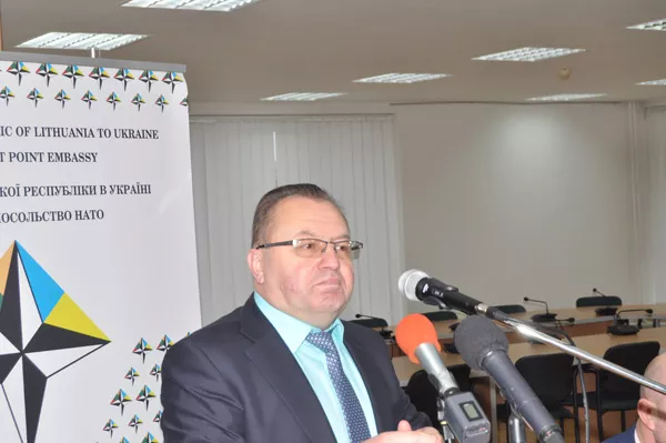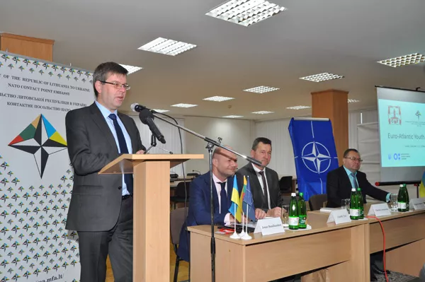 Посол Литовської Республіки в Україні Марюс Януконіс у вітальному слові, яке розпочав українською мовою, зауважив, що на цьому заході головні – студенти, подякував СНУ імені Лесі Українки за прийом, особливу ж подяку виголосив спікерам заходу. Основний текст промови виголошував англійською мовою, в якому пояснив мету Форуму, суть партнерства між НАТО і Україною. Також торкнувся теми сприяння у впровадженні реформ в Україні, а також допомоги ветеранам війни (яка нині триває на сході нашої держави, – ред.). Насамкінець побажав учасникам цікавих івентів.
