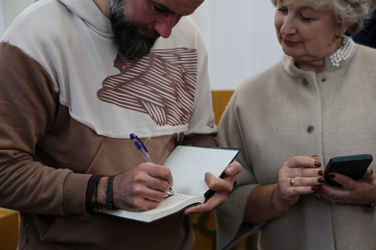Під час зустрічі присутні мали змогу поставити запитання автору, послухати уривки з книги та придбати видання з автографом Гліба Бітюкова.