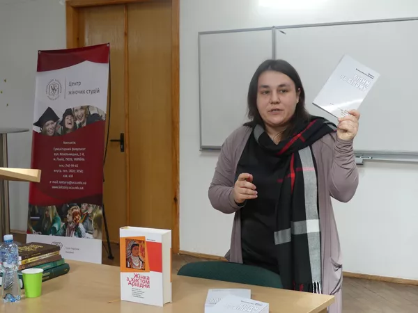 Галина Теслюк – біблістка, кандидатка наук з богослов’я, старша викладачка кафедри біблійних наук філософсько-богословського факультету Українського католицького університету, докторантка Каліфорнійського університету в Берклі та Консорціуму вищих богословських студій (США). Координаторка Центру Союзу українок Америки з жіночих студій в Українському католицькому університеті, який стартував ще 2013 року як звичайний лекторій. Нині це центр, який передбачає не лише академічну складову. Як розповіла пані Галина, сьогодні студентам пропонують курси з жіночої проблематики і можливість дослідити жіноче питання в межах тієї спеціальності, яку вони обрали собі в університеті. Також центр виходить за рамки академічної діяльності і розвиває дослідницьку складову. Один із перших проектів – усні історії сучасного військового жіноцтва (близько 40 інтерв’ю з дівчатами, жінками, які брали участь в АТО: чи то безпосередньо військові, снайперки, чи волонтерки-медики). Також центр почав публікаційну діяльність. І перша ластівка – монументальний твір про постать Наталії Кобринської.