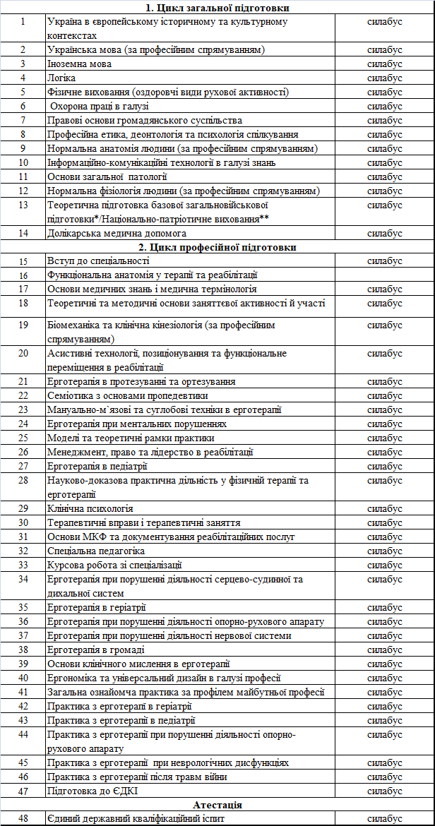 Освітня кваліфікація - Бакалавр терапії та реабілітації за спеціалізацією Ерготерапія